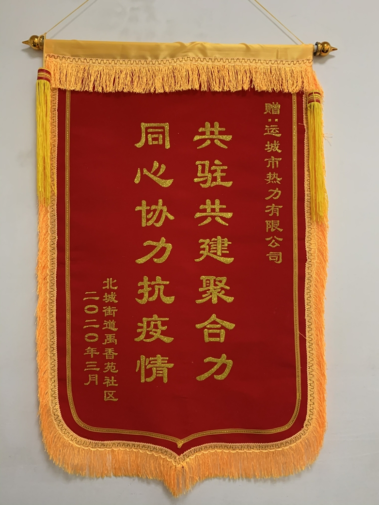 3月18日上午,禹香苑社區(qū)全體工作人員在周俊紅主任的帶領(lǐng)下,送來“共駐共建聚合力、同心協(xié)力抗疫情”的一面錦旗,對我公司疫情期間志愿堅守社區(qū)一線抗疫行動表示感謝。