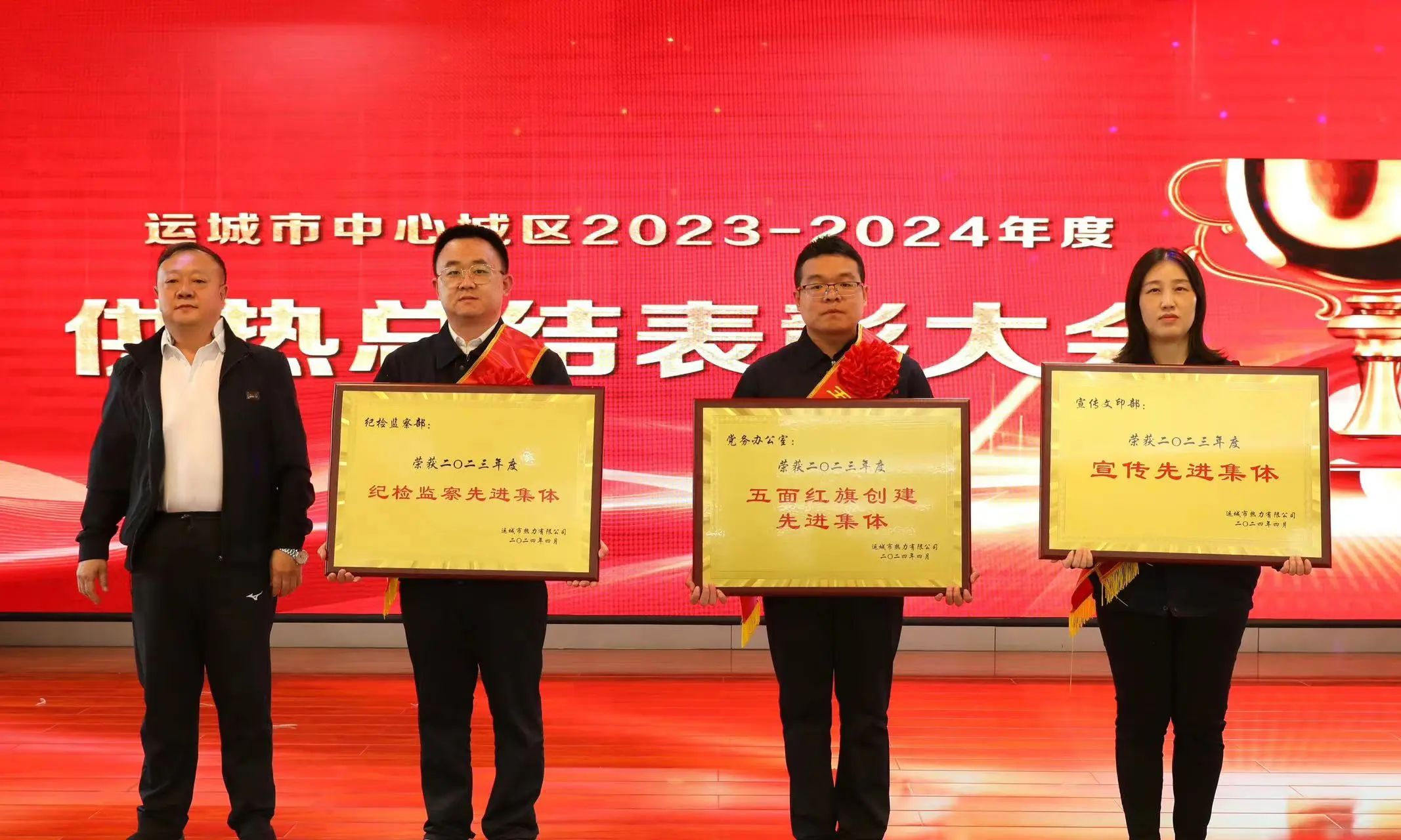 最美人間四月天,不負(fù)春光與時(shí)行。為了總結(jié)成績(jī),凝聚力量,4月19日下午,公司聯(lián)合晉建熱電、關(guān)鋁熱電、綠港熱力在熱源廠管理分公司四樓會(huì)議室共同舉辦運(yùn)城市2023—2024年度中心城區(qū)供熱總結(jié)表彰大會(huì)暨職工文藝展演。市工信局黨組副書(shū)記、市國(guó)資委黨委專(zhuān)職副書(shū)記劉軍虎、市城市供熱服務(wù)中心主任靳曉紅受邀出席,城投公司、運(yùn)達(dá)資產(chǎn)、晉建熱電、關(guān)鋁熱電、綠港熱力、項(xiàng)目公司、關(guān)鋁集團(tuán)有關(guān)領(lǐng)導(dǎo)及公司全體中層以上人員共計(jì)200余人參加了大會(huì)。