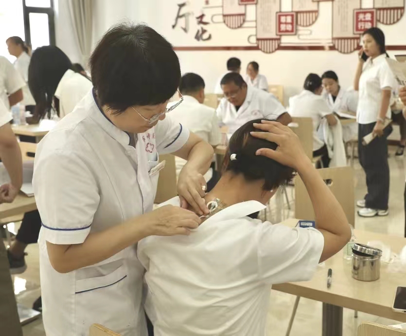 講座余溫未散,干部職工在工作人員的引導(dǎo)下,有序前往各診區(qū)開展診療咨詢,F(xiàn)場(chǎng)設(shè)有中醫(yī)內(nèi)科、外科、心病科、腦病科、治未病科等15個(gè)科室20余名資深醫(yī)師為職工們面對(duì)面、一對(duì)一診療。醫(yī)護(hù)人員們化身為健康衛(wèi)士,耐心傾聽職工的健康問題,仔細(xì)詢問病史,把脈問診、答疑解惑,針對(duì)每個(gè)人的身體狀況與生活習(xí)慣給出相應(yīng)的健康指導(dǎo)和治療建議,為每位職工開出了“良方”,獲得廣大職工一致好評(píng)。此次義診服務(wù)還涵蓋了三伏貼、耳穴貼壓、穴位貼敷等中醫(yī)特色體驗(yàn)。